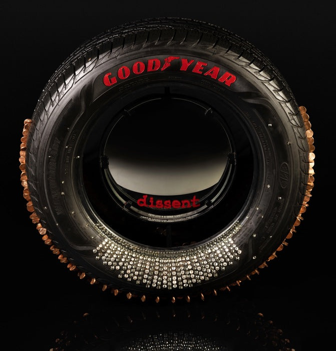 The Penny Test - Ledbetter v Goodyear, 2020, mixed media, 28 x 28 x 10 in. / 71.12 x 71.12 x 25.4 cm.