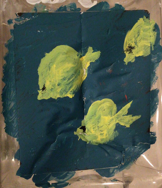 Yellow Tang, 2019, acrylic on plastic container, 12 x 12 in. / 30.48 x 30.48 cm.