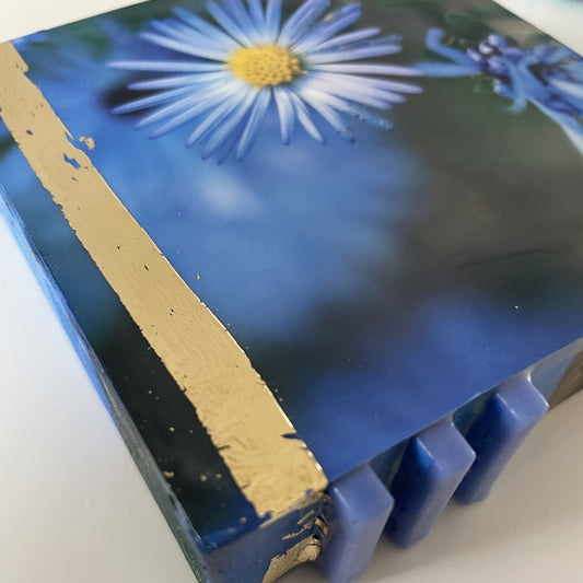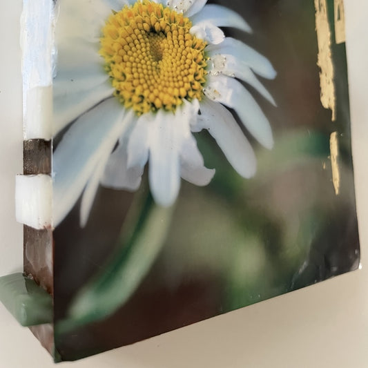 Daisies Light the Way, 2025, photography and encaustic, 4 x 4 in. / 10.16 x 10.16 cm.