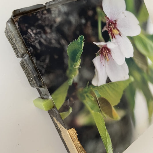 Petals of Perseverance, 2025, photography and encaustic, 4 x 4 in. / 10.16 x 10.16 cm.