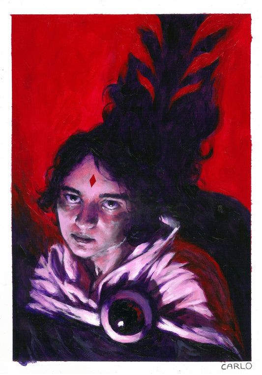 Azarath Metrion Zinthos, 2023, acrylic on paper, 16.5 x 12 in. / 41.91 x 30.48 cm.