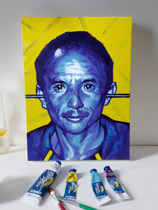 Caneta Azul, 2023, acrylic on canvas, 16 x 12 in. / 40.64 x 30.48 cm.