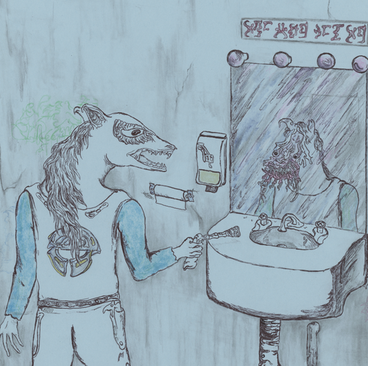 Freaking Out in the Bathroom, 2021, colored pencil on paper, 11 x 8.5 in. / 27.94 x 21.59 cm.