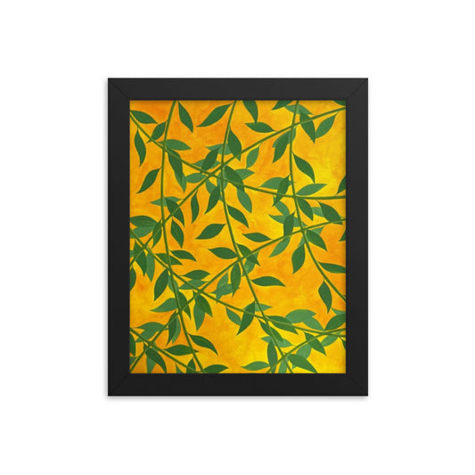 Silhouetted Green Leaves, 2023, gouache on framed paper print