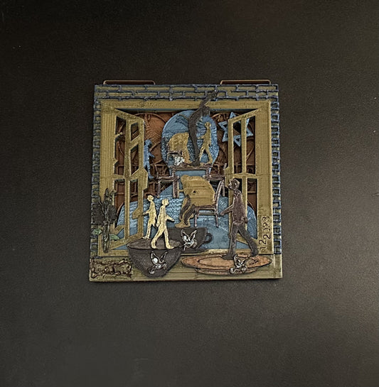 Window of the World, 2023, 3D printing collage drawing, 4.5 x 4.5 in. / 11.43 x 11.43 cm.