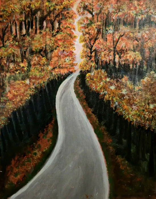 Path of Falling Leaves, 2023, acrylic on canvas, 11 x 14 in. / 27.94 x 35.56 cm.