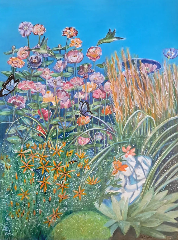 Summer Garden, 2023, watercolor and ink, 40 x 30 in. / 101.6 x 76.2 cm.