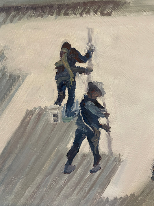 Roofers, 2023, oil on canvas, 16 x 20 in. / 40.64 x 50.8 cm.