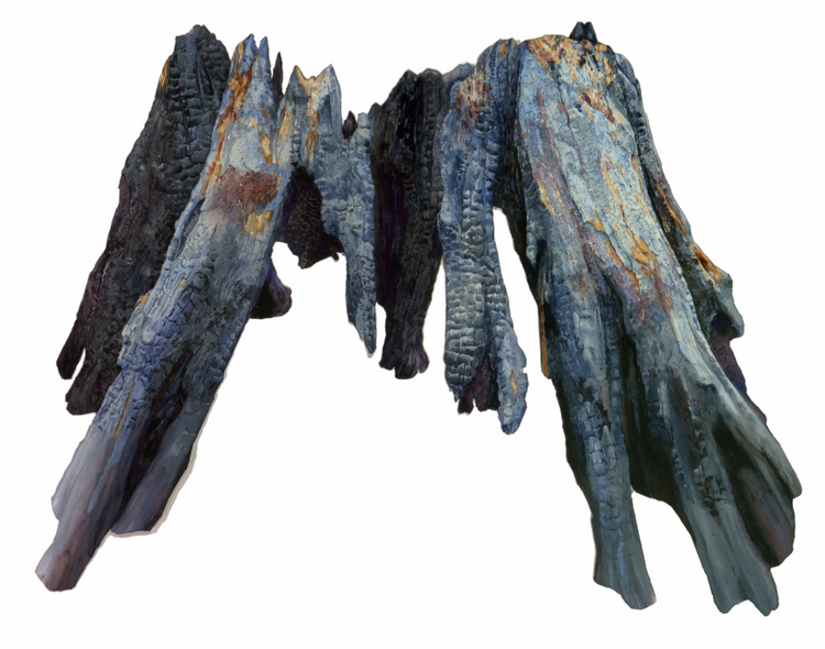 Bolt Creek Stump, 2024, varnished watercolor on torn paper, 46 x 36 in. / 116.84 x 91.44 cm.