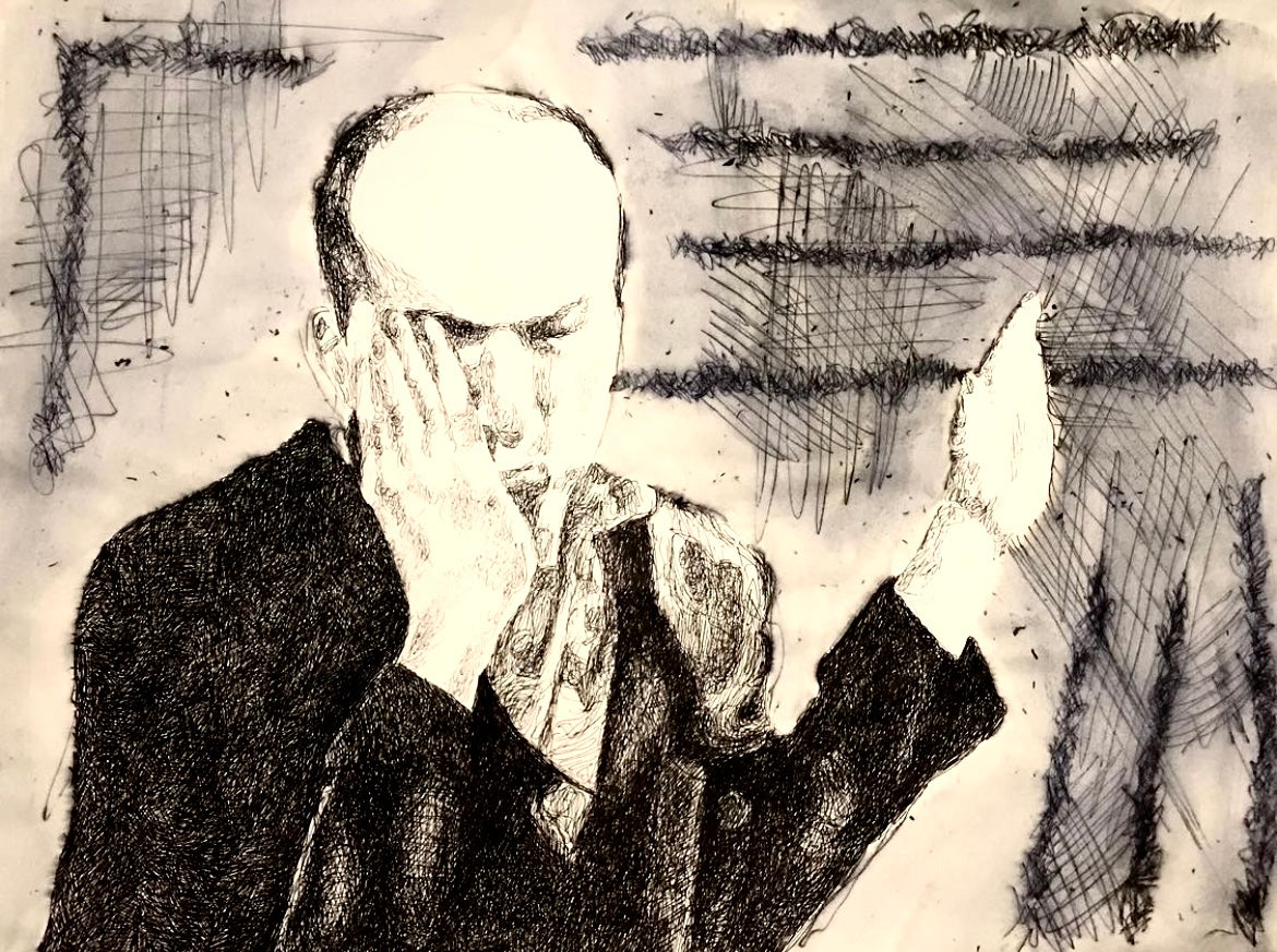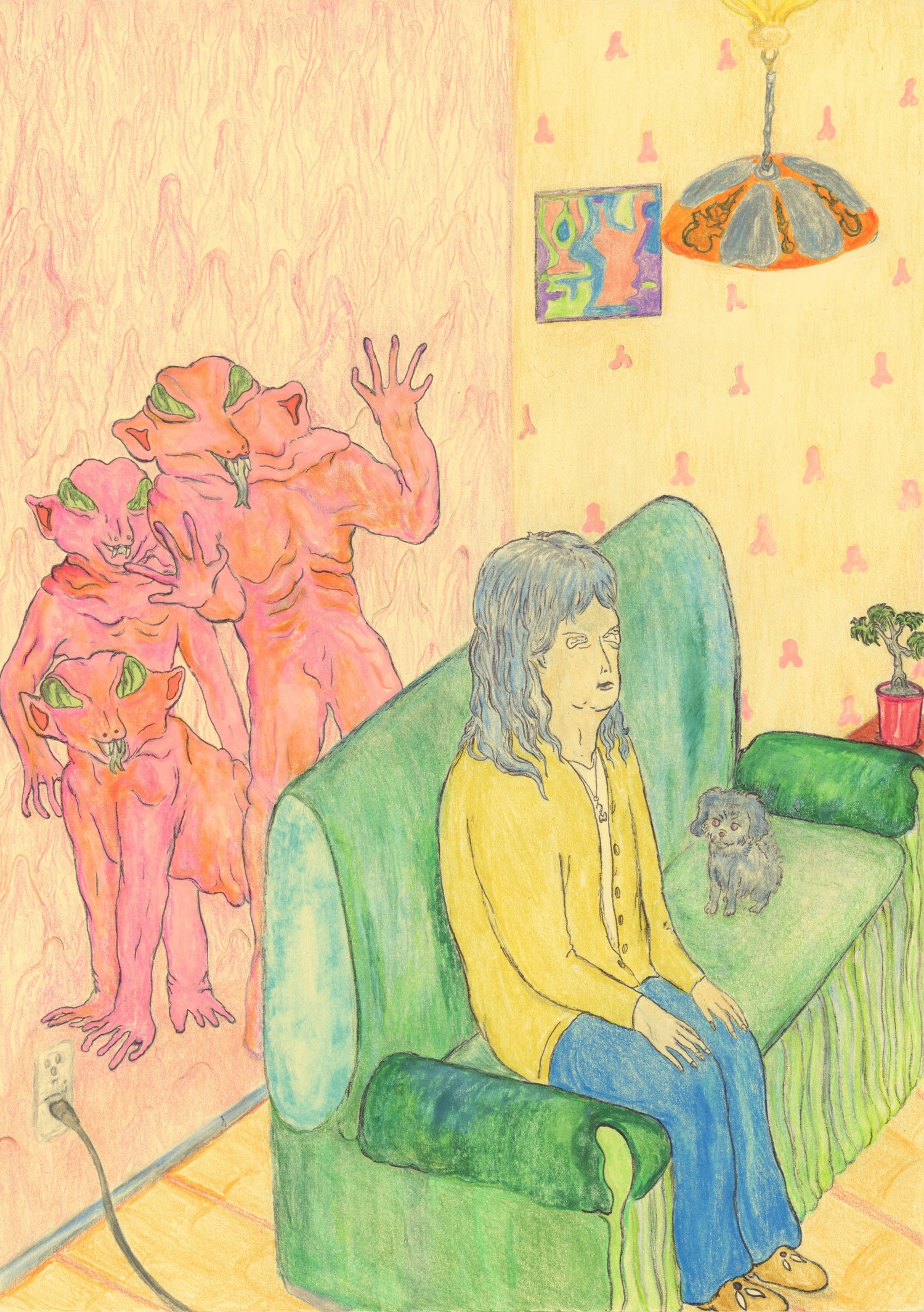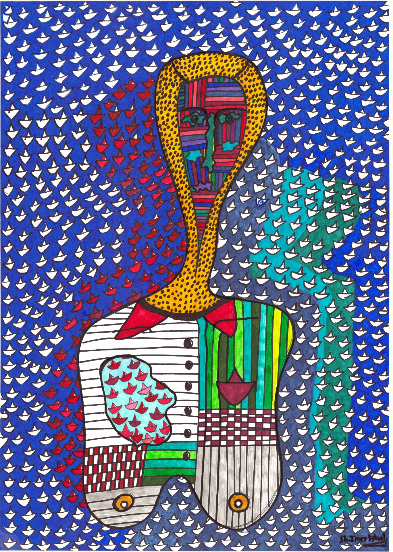 Decision, Shota Imerlishvili, 2023, watercolor markers and pencils on framed paper print