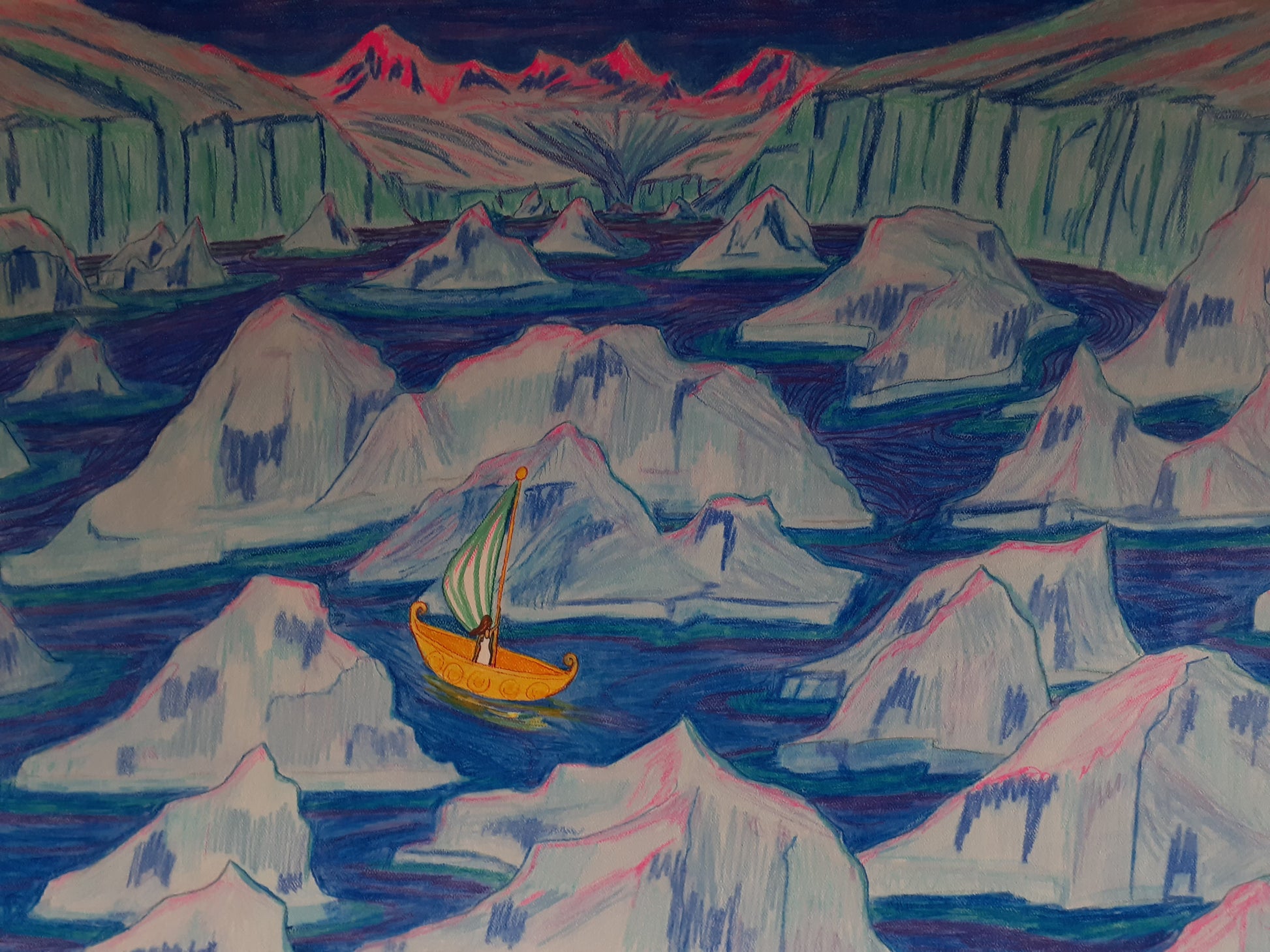 A Chilling Isolation, 2025, mixed media, 22 x 30 in. / 55.88 x 76.2 cm.