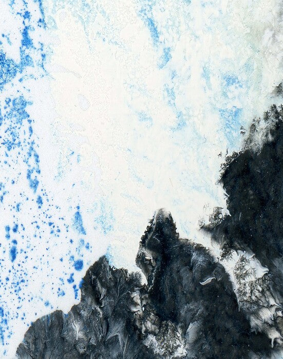 This work was created from a fantasy I had of two giants looking up at the night sky thousands of years ago. I digitally altered paint blots to create this work.