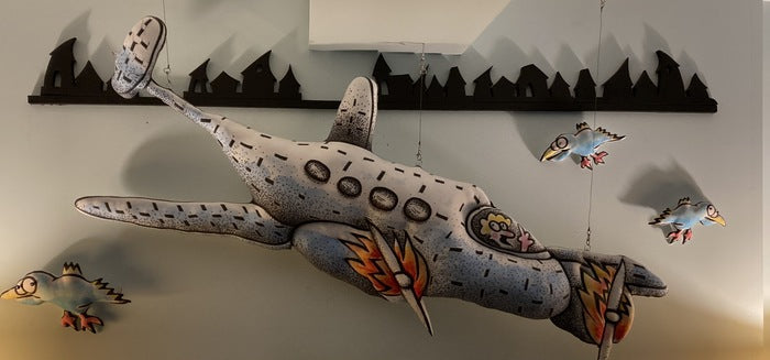 Amelia's Last Ride, Michael Quint, 2021, fiber, 25 x 60 x 10 in. / 63.5 x 152.4 x 25.4 cm.