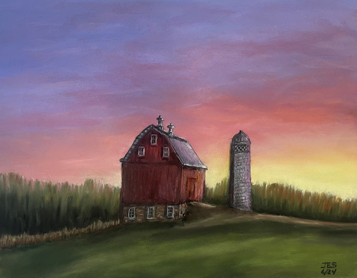 Arboretum Barn at Sunset, Jim Slavik, 2024, soft pastels, 11 x 14 in. / 27.94 x 35.56 cm.