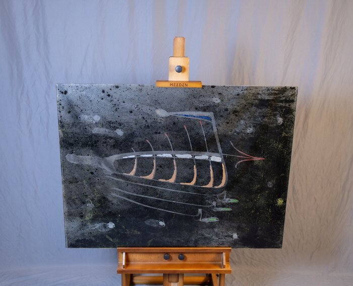 Artifact No.1: Hypnograph (Dream Archaeology Series), Anton Solodkii, 2025, etched mirror, gilding metals, paint, 32 x 42 in. / 81.28 x 106.68 cm.