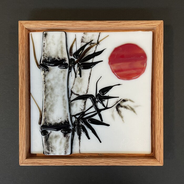 A fused glass painting of bamboo in the spirit of Asian ink brush painting