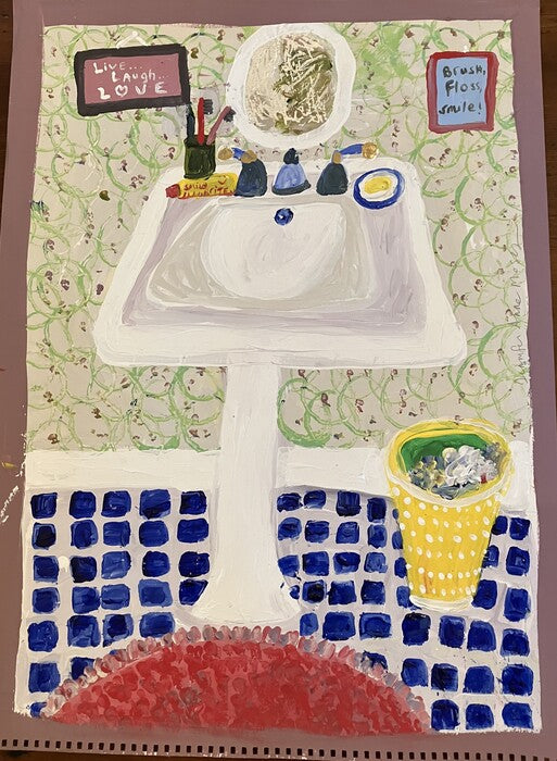 Bathroom Sink, Jennifer Moses, 2023, mixed media on paper, 22 x 32 in. / 55.88 x 81.38 cm.