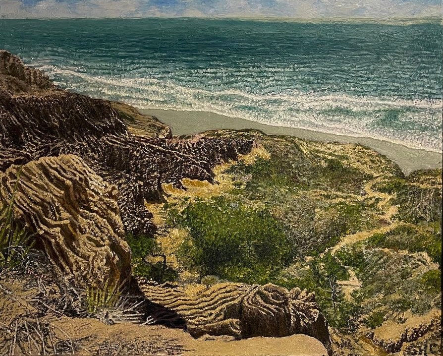 Bay Point Formation at Torrey Pines, 2022, oil on glass in frame, 22 x 30 in. / 55.88 x 76.2 cm.