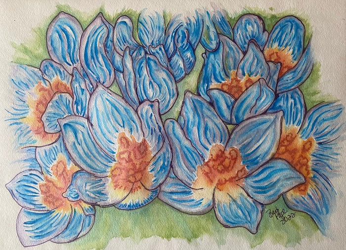Blue Garden, 2022, watercolor, 20 x 24 in. / 50.8 x 60.96 cm.
