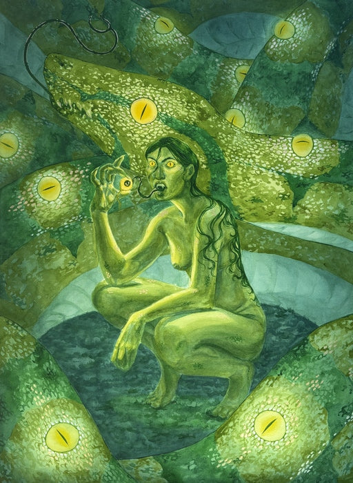 Boitatá, Taina Cintra Mattiazzi, 2025, watercolor on paper, 22.5 x 16.5 in. / 57.15 x 42 cm.