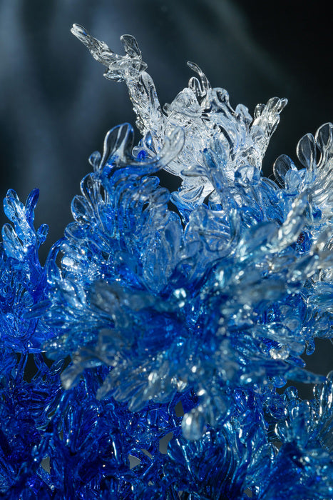Caerulea, Yujie Yang, 2025, glass sculpture on aluminum print, 60 x 40 x 3 cm. / 23.6 x 15.7 x 1.18 in.