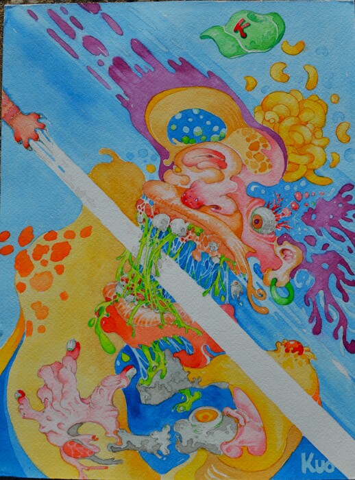 Cat Got His Tongue, Howard Kuo, 2024, watercolor, 24 x 18 in. / 60.96 x 45.72 cm.