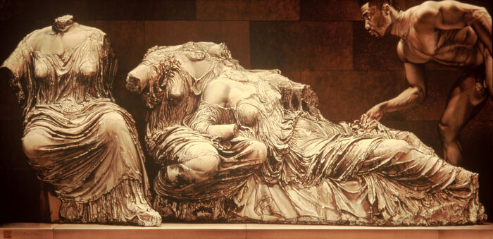Classical Figures I, Gerard Huber, 1994, airbrushed acrylic on canvas, 30 x 60 in. / 76.2 x 152.4 cm.