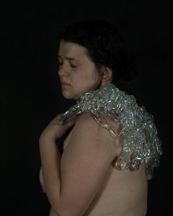 In the series, “Transparent Viscera”, I utilize the innate qualities of glass to describe abstract and invisible subject matter; emotions and the bodily sensations produced by them. The glass sculpture in this work is a physical embodiment of the emotions the subject described and now models.