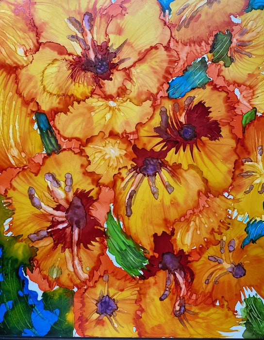 Daffodil Day, 2023, alcohol inks, 11 x 13 in. / 27.94 x 33.02 cm.