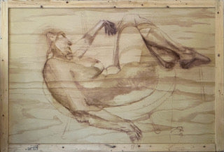 Deborah, Lianne Jedeikin, 2023, oil & pastel on recycled wood crate, 46 x 70 in. / 116.84 x 177.8 cm.