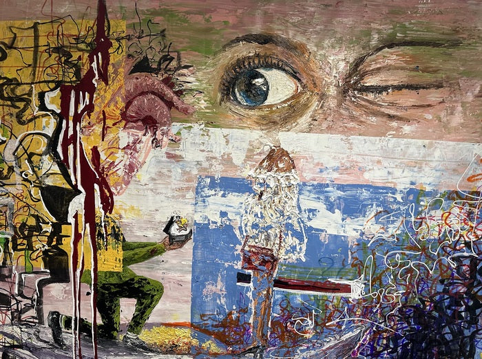 Dream Vs Reality, 2024, acrylic on canvas, 48 x 56 in. / 121.92 x 142.24 cm.