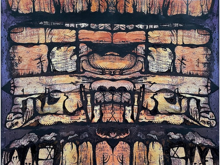 Early Glyph ‘Sketchbook’ II, Ancient Mesoamerica, Martin Schumacher, 2023, mixed media, 10 x 14 in. / 25.4 x 35.56 cm.