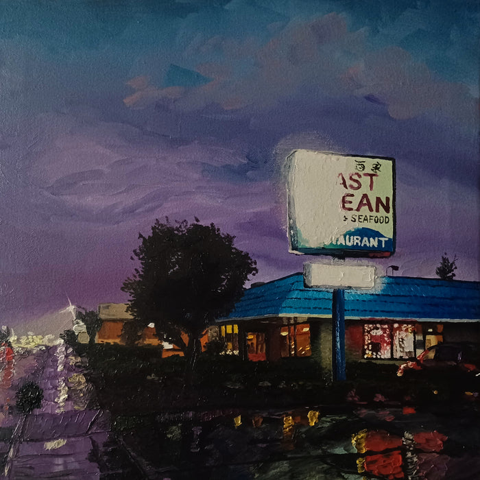 East Ocean At Dusk, 2024, oil on canvas, 15 x 15 in. / 38.1 x 38.1 cm.