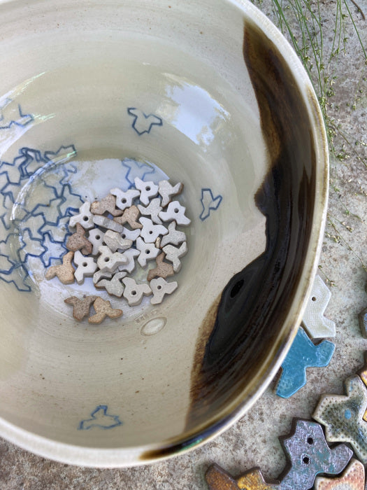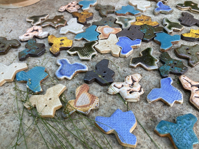 Einstien Hats, Adele ODowd, 2025, woodfired ceramic, 0.25 x 1.5 x 1.5 in. / 0.63 x 3.81 x 3.81 cm.