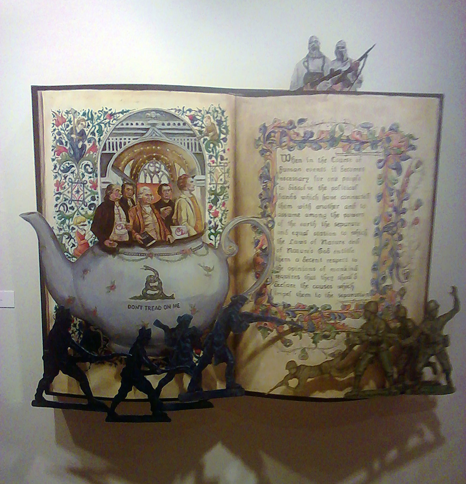 Enemy of the State, Mark Overbey, 2015, oil on masonite assemblage, 3 x 4 ft. / 36 x 48 in.