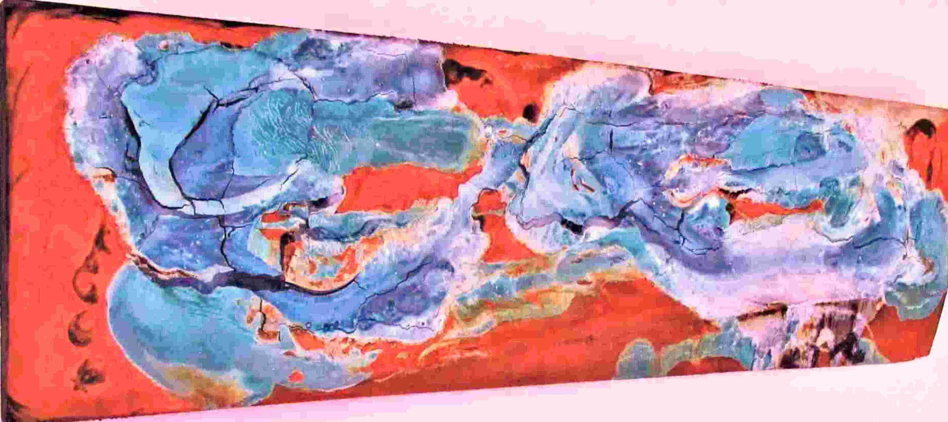 Ephemera, Ed Whitmore, 2020, oxidized iron copper and bronze on wood, 36 x 16 in. / 91.44 x 40.64 cm.