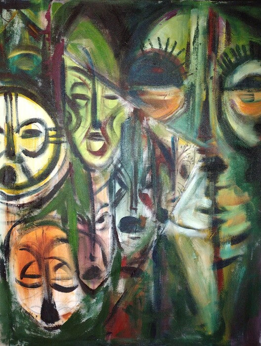 Faces of Diety, Lara Boglo-Price, 2022, acrylic on canvas, 36 x 32 in. / 91.44 x 81.28 cm.
