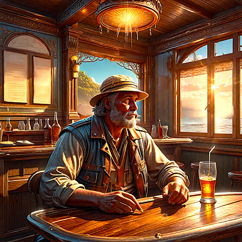 Fisherman at Bar, 2025, embroidery, 16 x 16 in. / 40.64 x 40.64 cm.