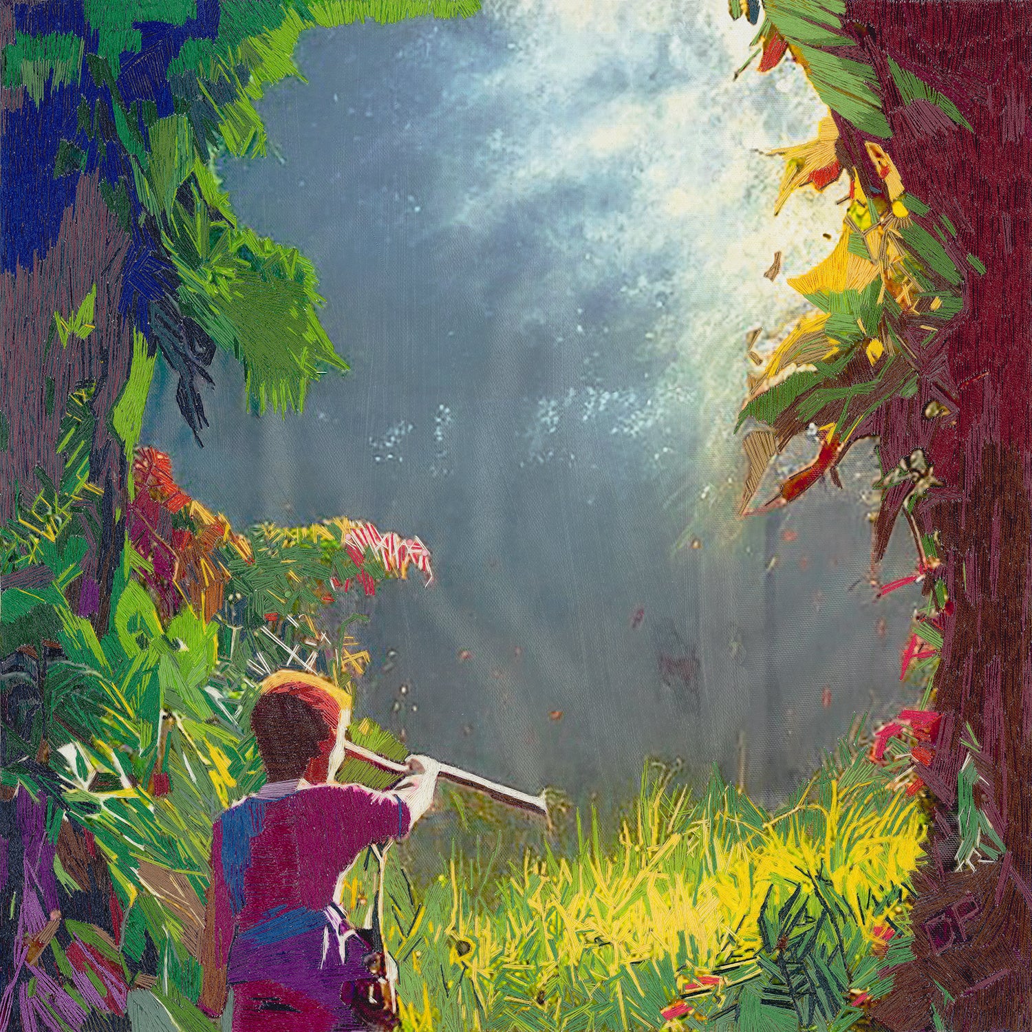 Forest Adventure, David Poyant, 2025, embroidery, 18 x 18 in. / 45.72 x 45.72 cm.