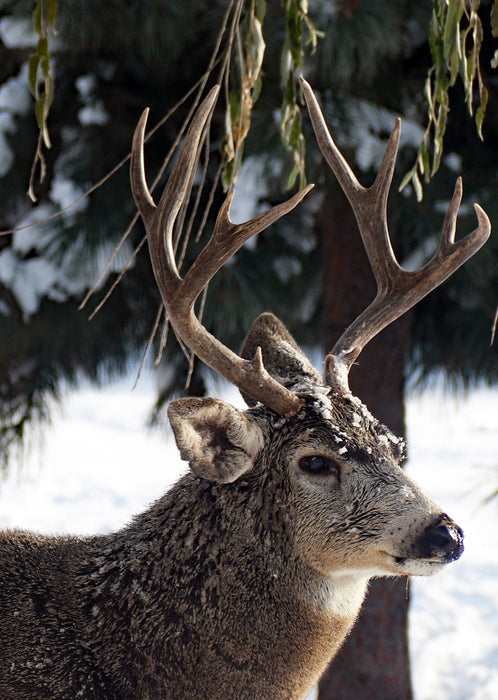 A frosty buck in the back yard in Bend, OR.