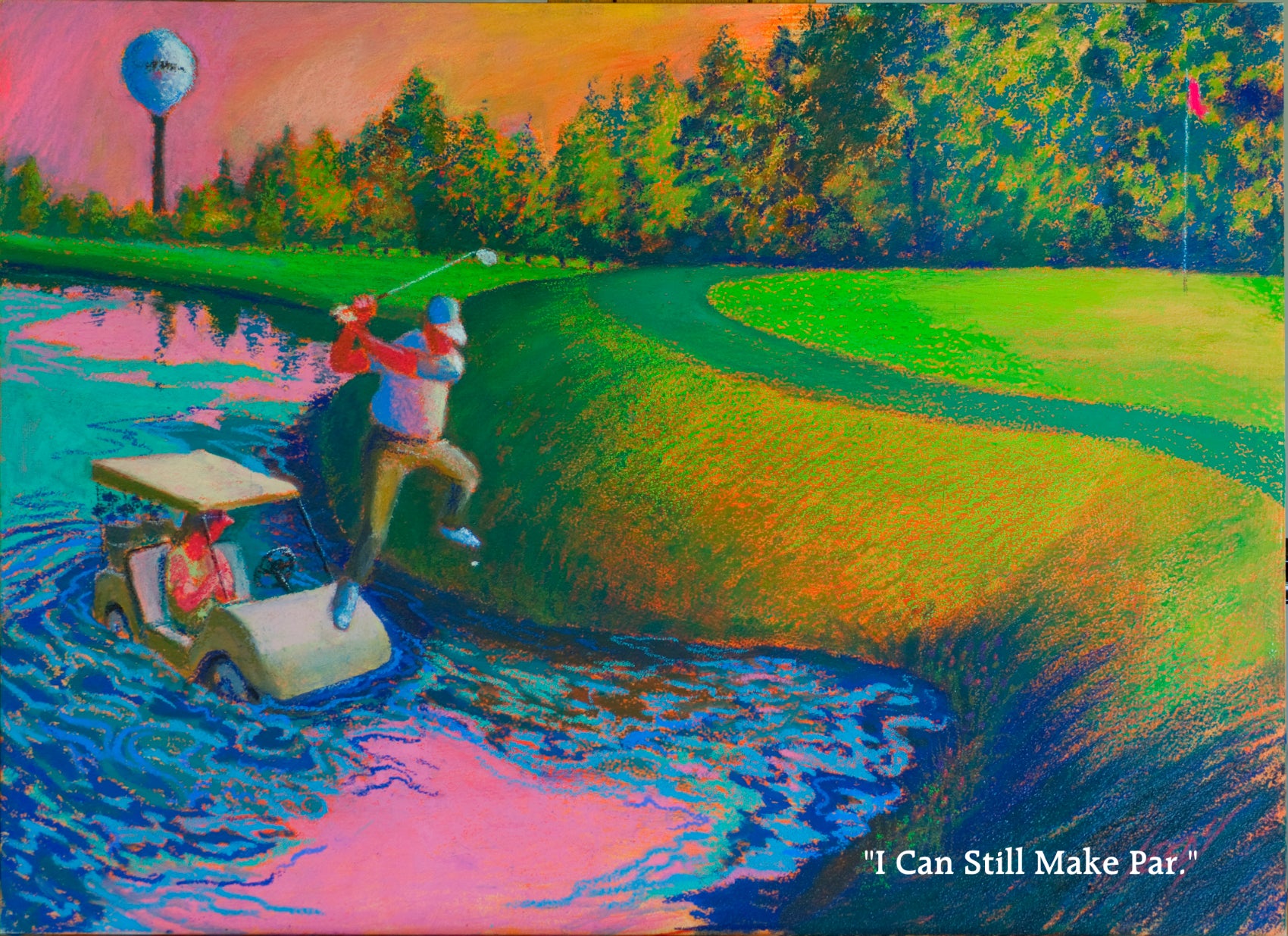 I Can Still Make Par, Jeff Leedy, 2022, oil pastel, 24 x 18 in. / 60.96 x 45.72 cm.