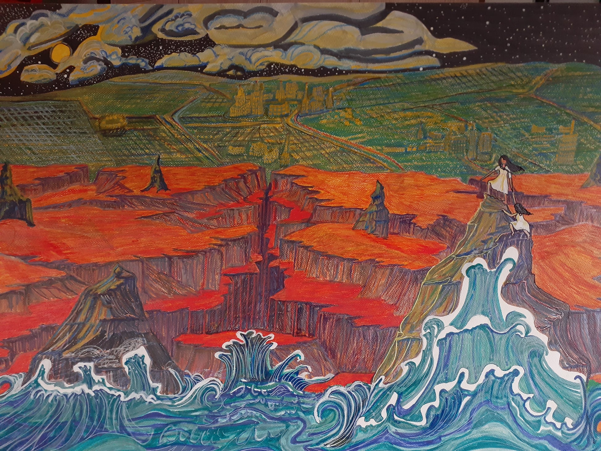 Impending American Catastrophe, Rene' A Westbrook, 2025, mixed media, 22 x 30 in. / 55.88 x 76.2 cm.