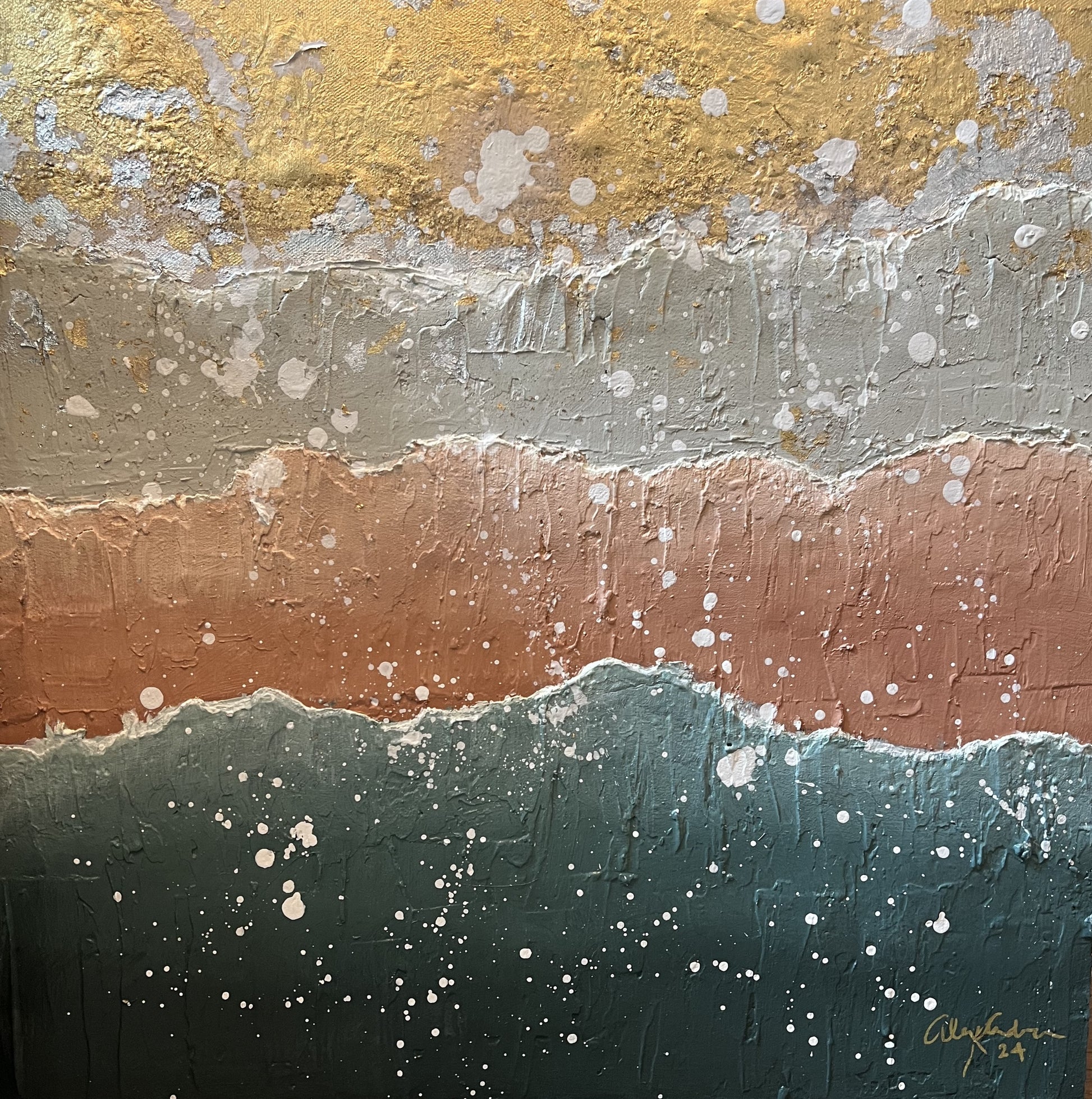Incandescent, Alexandra Anderson, 2024, acrylic and mixed media, 20 x 20 in. / 50.8 x 50.8 cm.