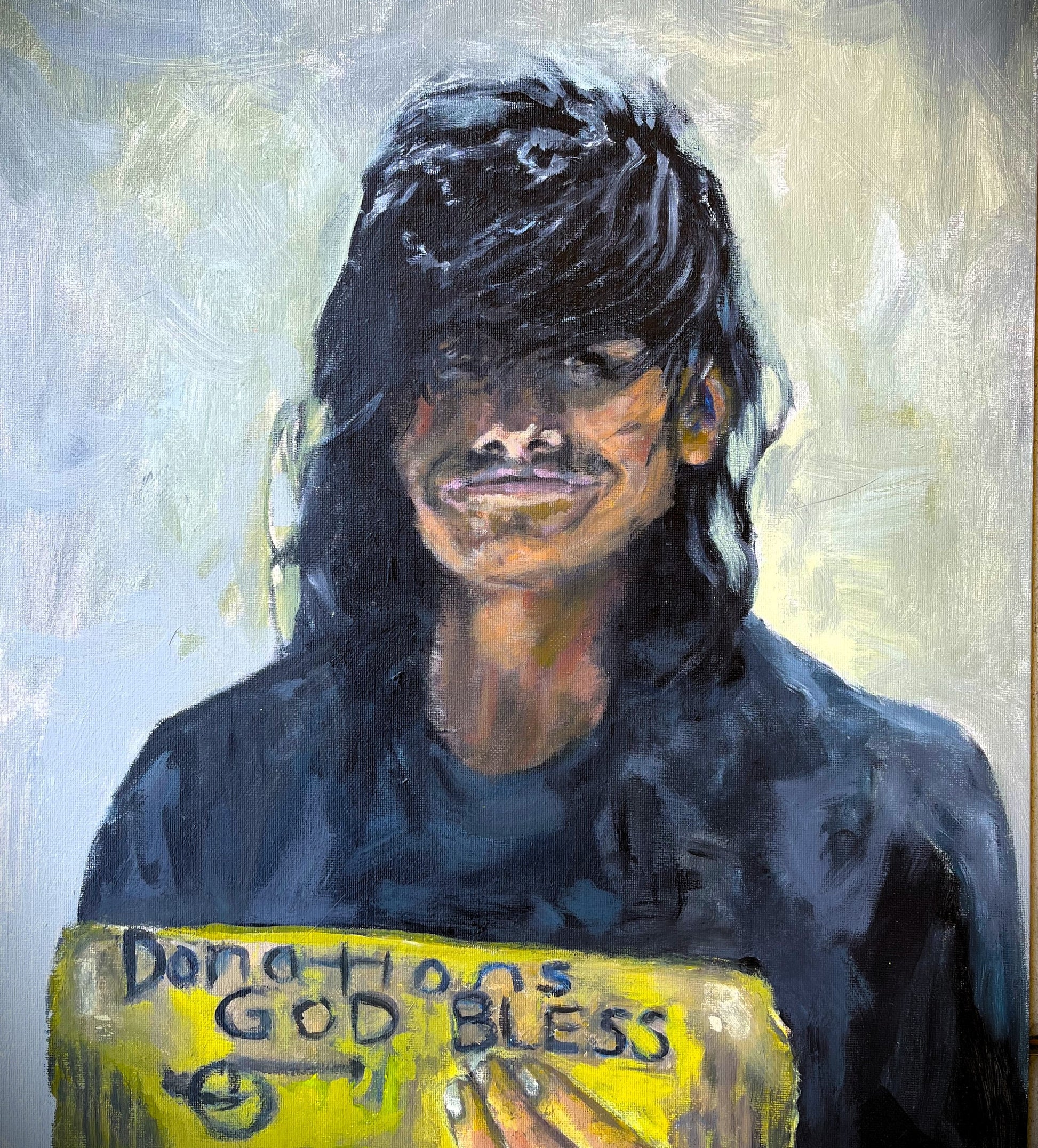 Javiar at the 10 Frwy & Golf Center Dr. Indio, California, 2025, acrylic on canvas, 18 x 24 in. / 45.72 x 60.96 cm.