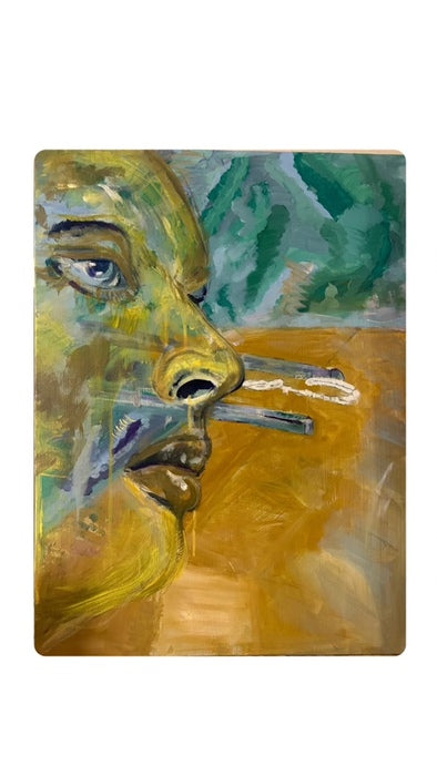Ladder Up explores portraiture through symbolism and spatial tension. The figure and ladder evoke ambition, struggle, and vulnerability—suggesting a climb toward identity or transformation. It reflects my interest in expanding portraiture beyond likeness into narrative and psychological depth.