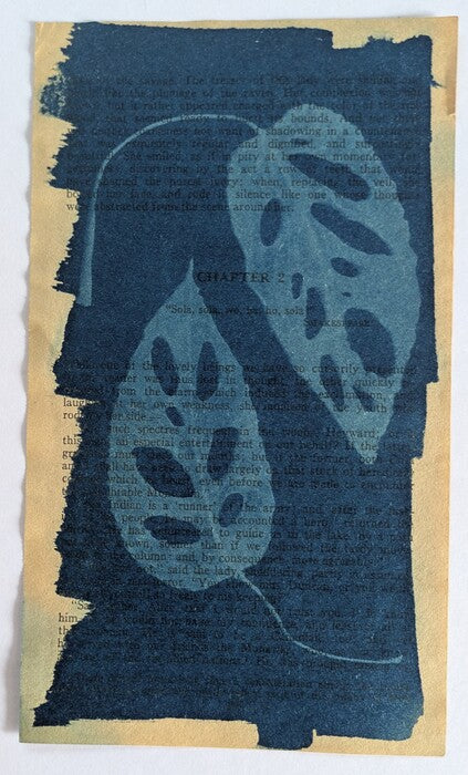 Last of the Mohicans 20, 2024, cyanotype on book paper, 7 x 4 in. / 17.78 x 10.16 cm.
