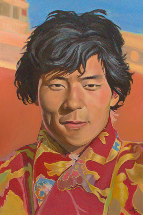 This acrylic painting captures the vibrant spirit of a Tibetan man, his face full of life. Bold, expressive colors bring depth to his features, reflecting the rich cultural heritage and resilience that define his story.