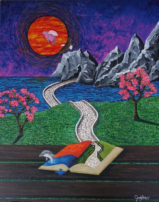 Lost in a Story, Jody Peters, 2024, acrylic on canvas, 20 x 16 in. / 50.8 x 40.64 cm.