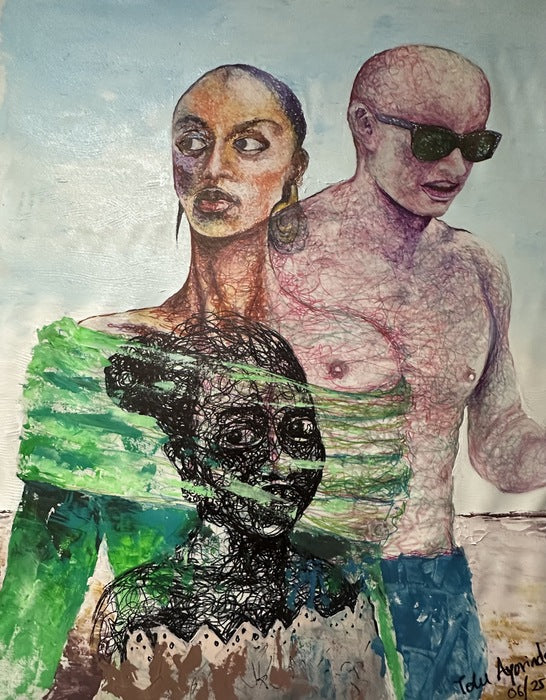 Love ?, Tolu Ayorinde, 2025, acrylic and pen on canvas, 32 x 29 in. / 81.28 x 73.66 cm.