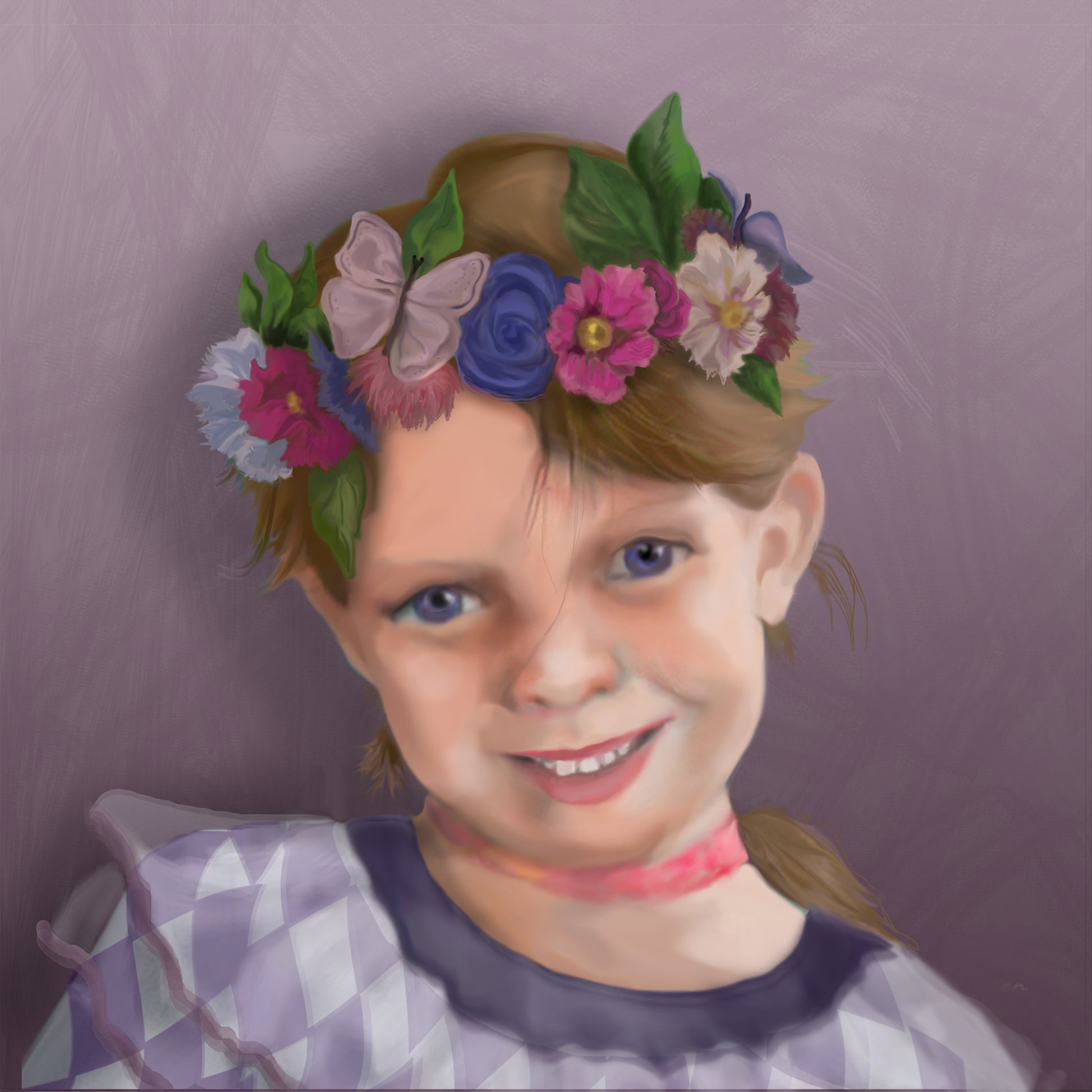 Lulu in Dress Up, Carmen Magri, 2024, graphic watercolor, 12 x 12 in. / 30.48 x 30.48 cm.